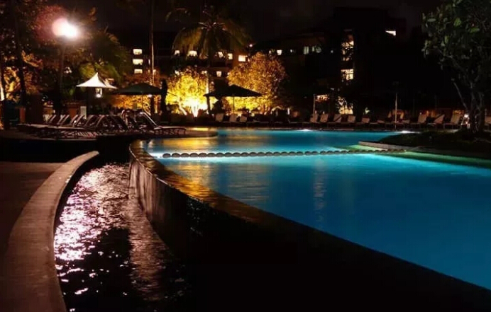 原理:無邊泳池的邊在水面以下,水池背面加落水槽,水漫過泳池邊流向落水槽,落水槽收集池水至底部的集水池,集水池將水過濾后重新輸入泳池。同時(shí),為了讓水在視覺上是鋪滿的,邊界有一個(gè)向里的坡度,視覺上,我們看到的是靜止?fàn)顟B(tài),感覺是無邊緣的,然而背后落水槽的池邊,當(dāng)水面不處于靜止,池邊的水流還會(huì)像嘩啦啦的瀑布一樣流到集水池。